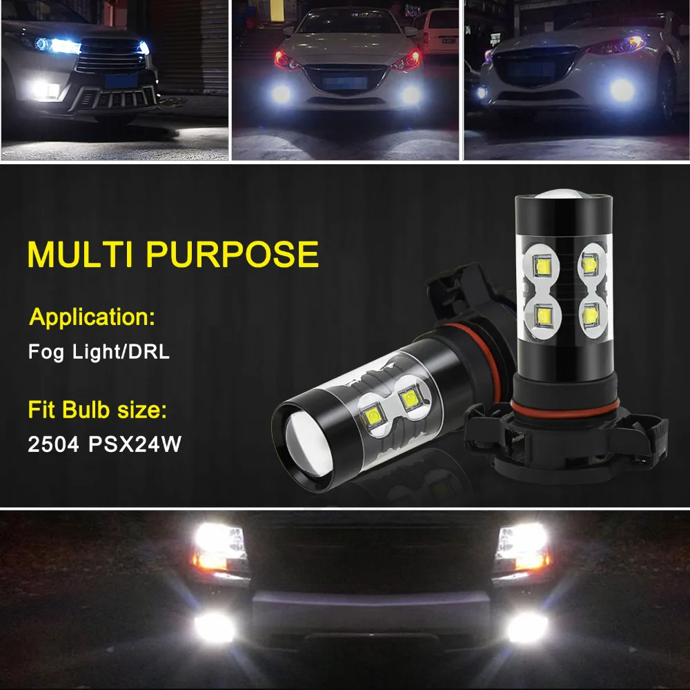 price cut 2pcs PSX24W H16 H11 H8 H10 P13W H3 9006 HB4 LED 50W DRL Projector Car Fog Lamp Light For Subaru VW